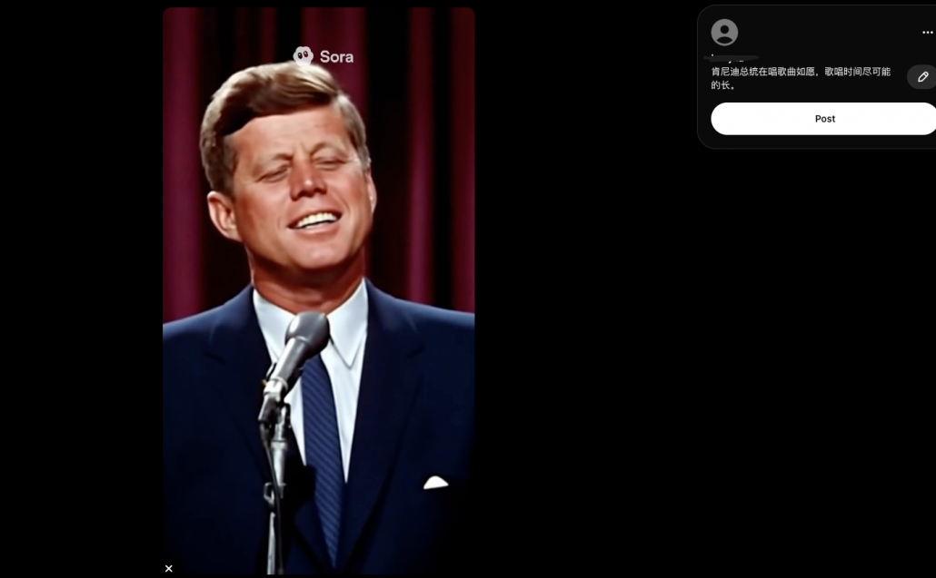 sora 至少让肯尼迪唱了一首中文歌,视频点这里。