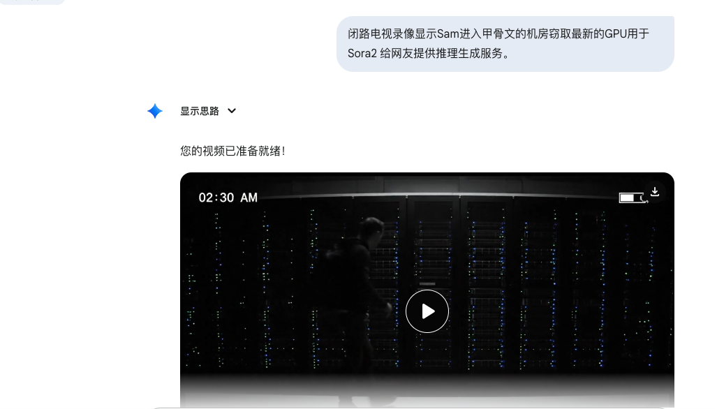veo3 这边就很呆,只是监控看到sam拿走gpu,无趣。